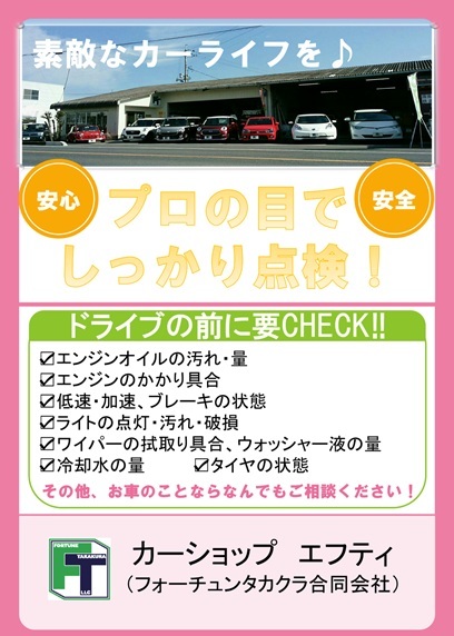 プロの目でしっかりと点検し、安心安全で楽しいドライブをお楽しみくださいね!