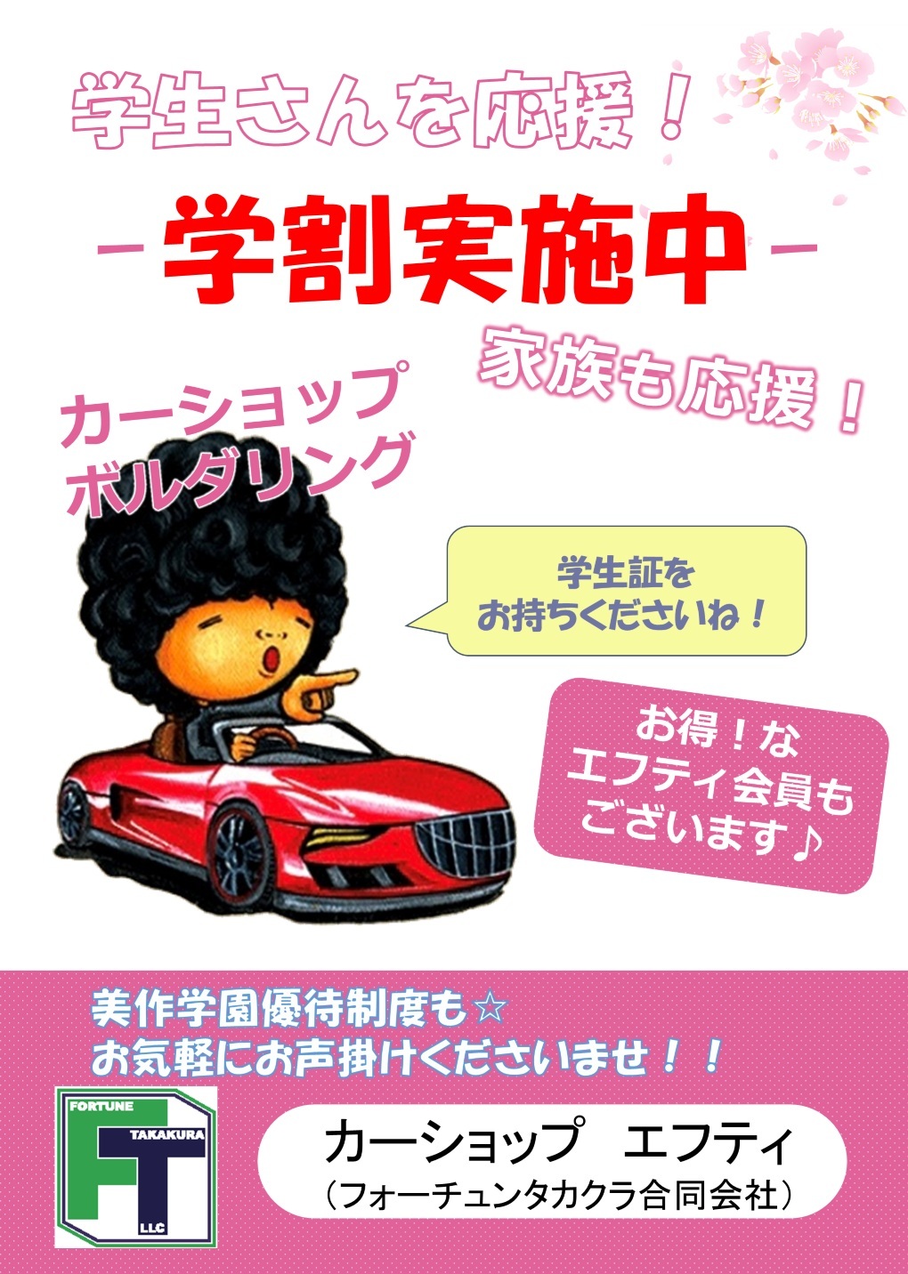 エフティでは、とってもお得な学割、またエフティ会員様を募集しております♪